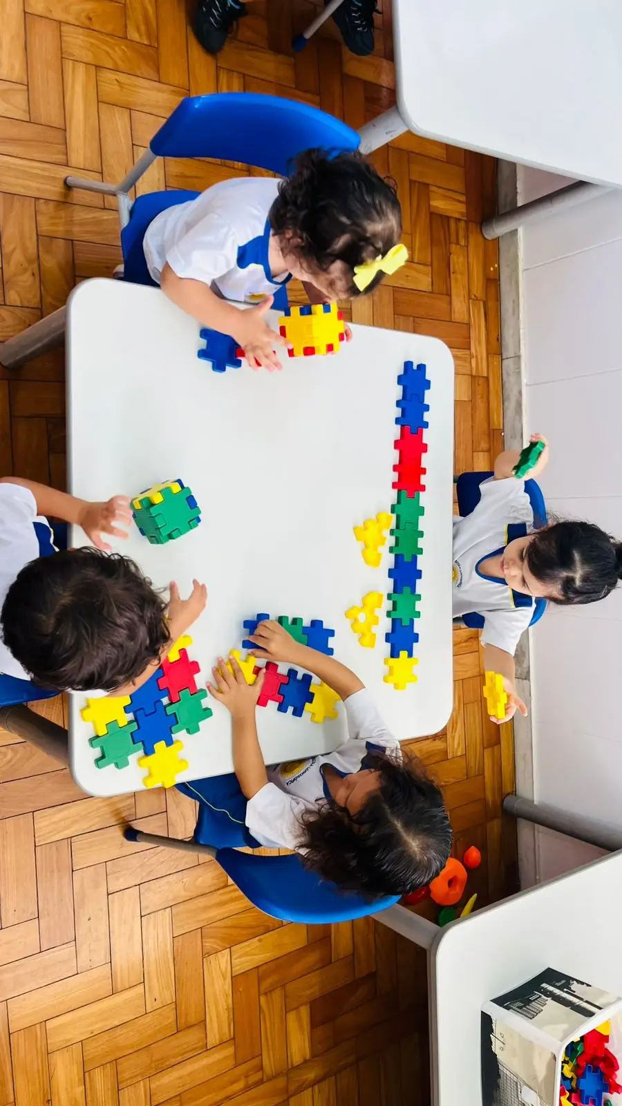 O auxílio à criança no desenvolvimento da linguagem oral através do diálogo, escuta de histórias, músicas, poesias, perguntas e re-perguntas, práticas de recursos lúdicos e concretos para ampliar as percepções visuais, táteis, gustativas, olfativas e auditivas. A contribuição à orientação de suas relações sociais com atividades que estimulam o respeito às regras básicas de convivência através de suas interações e brincadeiras com outras crianças. Estímulos constantes a experimentar as possibilidades corporais através da música, imitação de sons, dança e brincadeiras. Manipulação de diferentes materiais, garantindo o bem-estar, a educação ambiental e muitas oportunidades de superação, aprendizado e conquistas.